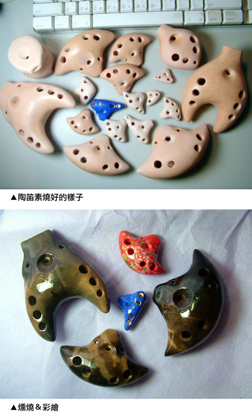 先跟大家分享我自製規格的形體,過幾天就會陸續寄送給寄回函的讀者。拜訪過志名師傅回來後,就試著做十二孔標準規格的陶笛,顯然還做了不少,嘻嘻!想法跟心得就等有燒製完成時再請大家指教囉!