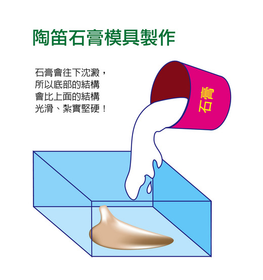 在看了翻製猴子石膏模的視頻影片後,疑問是該怎麼讓陶笛浮在石膏水裡?