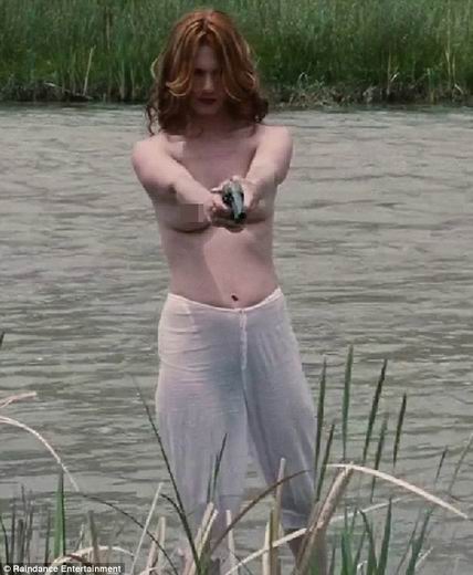 《Sweetwater》是一部西部片,預告片日前在英國首度曝光,珍妮艾莉瓊斯完全改變形象,除了將一頭招牌金髮染成紅色,在片中又騎馬又玩槍之外,已經是一子之母的她,更有一場在河邊裸露的演出,只見她上半身露點,下半身雖有薄紗覆蓋,但私處毛髮卻若隱若現,令她的好身材幾乎一覽無遺。