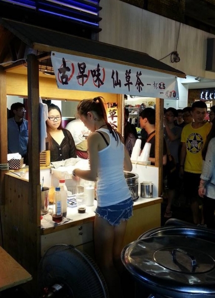 「仙草茶妹」游小姐未滿20歲,拍照PO網純粹是好玩,沒有要和冰淇淋妹PK的意思,這幾天有不少客人慕名而來,但她只是工讀生,不便多說,否則老闆會扣薪。