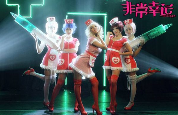 章子怡難得一見大玩角色扮演,在與王力宏搭檔演出《非常幸運》裡,她身穿火紅護士服搭配上性感熱舞使勁賣弄風搔可說是誘惑指數100%。