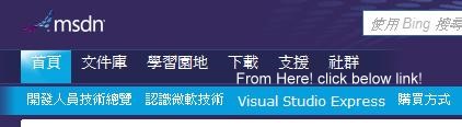 2.在畫面上的功能連結列,你會看到一個 Visual Studio Express 的連結
