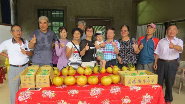 楊梅區推廣的「寶島甘露」平地水梨,前市長彭聖富退休後種植水梨是最大的推手,與弟弟彭聖臺在楊梅區富岡里富梨園(富全街288號)種植「寶島甘露」品種水梨,水梨比小朋友的臉還大,一粒重一點五公斤(二點五台斤),水份足、甘蔗香、入口甜,引領著楊梅區農民種植超高品值的水梨。