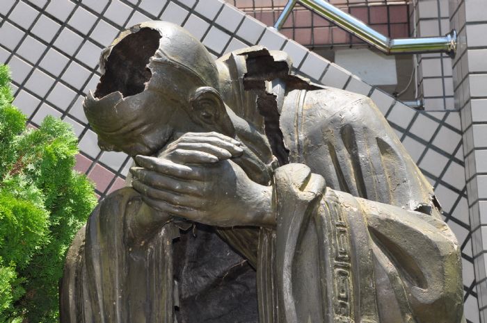 【桃園訊】永安國中原有之孔子銅像於民國83年樹立,已有20年的歷史,矗立於校園最顯著之處,陪伴師生度過每個晨昏。無奈,102年7月蘇力颱風來襲,重創校園,校園建築、樹木受到嚴重損害,連孔子銅像亦無法倖免,遭撞擊而斷頭的孔子銅像,令師生頓失精神的支柱。