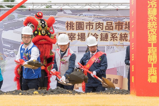 桃園市副市長王明鉅3日上午前往蘆竹區,出席「桃園市肉品市場現代化屠宰場(冷鏈系統)改建工程」開工動土典禮。王副市長表示,本次改建工程深具挑戰,首先,因肉品市場在工程進行時仍要繼續運作,「半半施工」難度相當高,本案花費3年規劃,歷經兩任市長的努力;第二,工程經費龐大,總核定經費15.1億元,由農業部、市府、桃園市肉品市場以7:2:1之比例共同分擔,感謝中央、地方與在地業者三方共同協力。