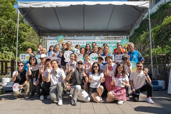「銀JOIN未來 職涯亮起來健走活動」活動盛大登場,勞動部勞動力發展署署長黃齡玉(第三排右5)、桃竹苗分署長賴家仁(第三排左4)等與會貴賓及表演團體一同合影。