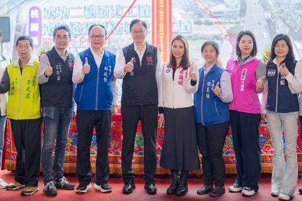 桃園市長張善政(28)日下午前往桃園區,出席「桃園區成功二橋新建工程暨成功路五叉路口改善工程開工動土典禮」。張市長表示,成功二橋動工象徵市府推動北區道路系統優化的重要里程碑,未來虎頭山地區將展現嶄新交通與市容樣貌。長年以來,成功陸橋、成功路三段與三民路交會的五叉路口為北區交通瓶頸,尖峰時段車流壅塞,市府經研議推動本案,結合道路拓寬與動線優化,從根本改善交通環境,預期可有效紓解車流、提升通勤效率並帶動周邊地區發展。