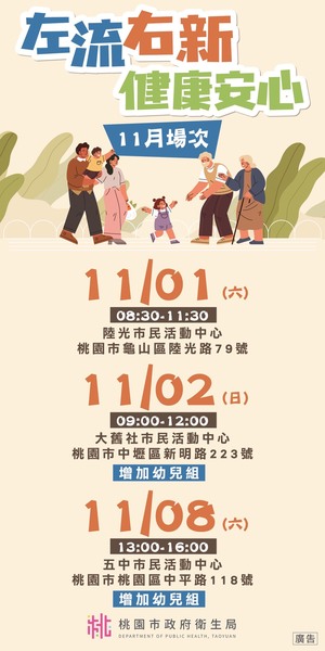桃園11月持續推動「左流右新 健康安心」巡迴接種  打疫苗送好禮、雙重防護更安心