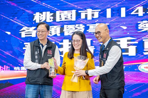 桃園市長張善政1日上午前往中壢區,出席「桃園市114年優良醫師、各類醫事、藥事及長照人員表揚活動」,並逐一頒發獎座肯定獲獎人員傑出貢獻。張市長表示,市府積極推動多元健康照護政策,包含擴大肺癌篩檢、多項孕產婦福利措施,以及(31)日啟用的「行動CT醫療車」等,皆需仰賴全市醫師、醫事、藥事及長照人員的辛勤付出,才得以順利推動,感謝從業人員發揮專業、貢獻所能,和市府共同守護市民健康。