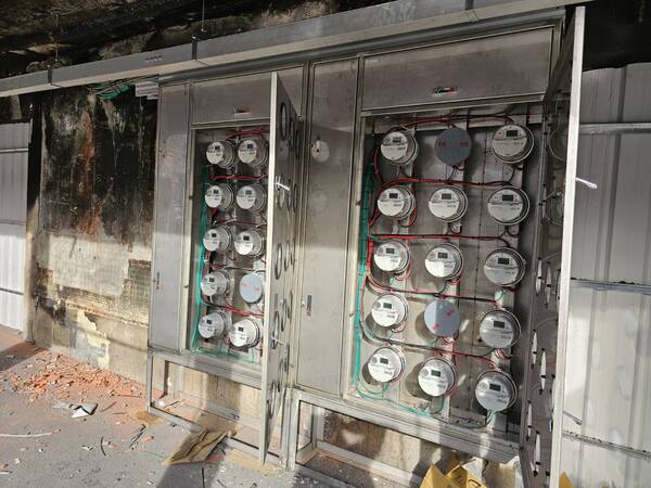 經發局市場科科長陳慶仁表示,南門市場復電作業分三階段進行。第一階段已於上週協調台電,率先完成外圍公攤區48至51號、23至27號的攤位通電;第二階段則完成市場中央區(59至88號豬肉攤區)的檢測並恢復電力;第三階段為災損最嚴重的燒毀區,相關台電報裝程序已於昨日完成,並同步完成電錶箱安裝,待後續重建完工即可全面恢復供電。