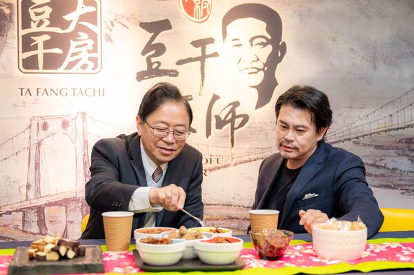 桃園市長張善政20日上午前往大溪區,致贈大房食品股份有限公司「桃金百年老店」匾額,肯定大房豆干持續導入創新思維,將百年工藝與現代經營模式結合,展現老店轉型升級的典範,也期盼藉由今日表揚,帶動本市更多老店投入創新,共同形塑桃園老店品牌新價值。