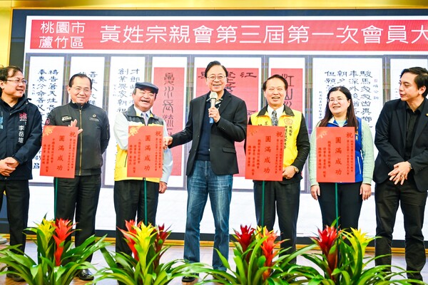 桃園市長張善政24日中午前往蘆竹區,出席「蘆竹區黃姓宗親會第3屆第1次會員大會」。張市長表示,宗親會是市府推動政策的重要夥伴,市府將持續與黃氏宗親會保持密切合作,共同發揮宗親力量,投入地方公益與社會關懷。