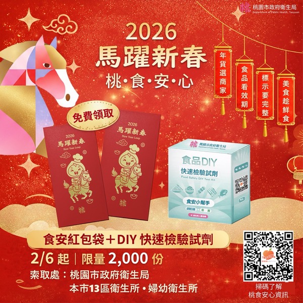 桃園市春節食品抽驗144件 3件不符規定 衛生局發送食安紅包袋及DIY檢驗試劑把關食安