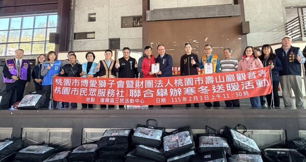 本次活動由桃園市民眾服務社、桃園市博愛獅子會共同發起,並結合桃園壽山巖觀音寺、復興區身心障礙者福利協會等單位愛心響應,捐贈內容包括毛毯、白米、食用油及乾麵等生活必需品,期盼在寒冷季節中,為弱勢家庭送上最實際的關懷與支持。