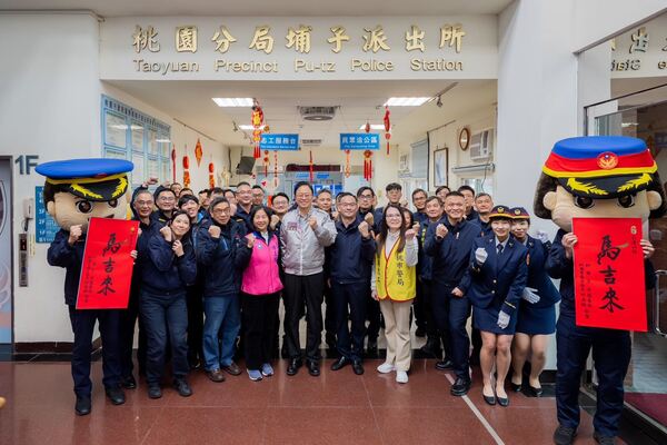 【記者葉志成 /桃園報導】桃園市長張善政9日下午前往龜山分局、蘆竹分局、大園分局、桃園分局及市府警察局,慰勞警察同仁及協勤民力,並頒贈春節慰勞金及慰勞品。張市長表示,春節治安與交通維護工作繁重,感謝警察同仁與協勤民力犧牲假期堅守崗位,全心守護市民平安。市府特於節前致贈慰勞金及慰勞品,向所有投入維護工作的夥伴致上最高敬意。