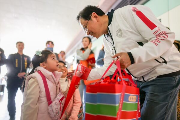 視察春節疏運 張善政致贈巧克力花束溫暖返鄉路