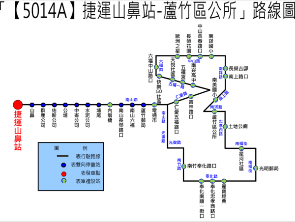 本次調整內容包括維持【5014桃園-捷運山鼻站】主線服務,以循環線方式服務提供平日5班、假日4班;新增【5014B桃園-蘆竹區公所】強化桃園往返南崁地區服務,以循環線方式服務提供平日25班、假日16班;以及【5014A捷運山鼻站-蘆竹區公所】 串聯上、下南崁與捷運山鼻站,以循環線方式服務提供平日13班、假日13班,便利民眾轉乘機場捷運,形成更完整的區域交通網絡。