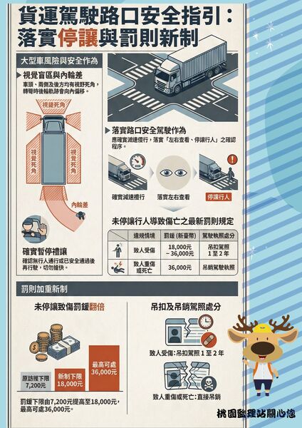 桃園監理站呼籲貨運業者及駕駛人確實遵守交通規則,落實停讓文化,共同打造安全、安心之用路環境。