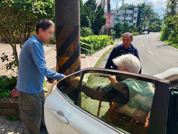 龍潭分局石門派出所巡佐林偉政、警員王耀民日前接獲報案,通報一名老婦疑似失智跌坐路邊,需要協助。員警立即趕赴現場,發現老婦神情茫然、語意表達不清,身旁車輛呼嘯而過。警員先攙扶到安全處確認其身體狀況,所幸並無明顯外傷不適,隨即耐心陪伴安撫情緒,避免再度發生危險。因老婦一時無法說出住址與家屬聯絡方式,員警靈機一動,決定以警車載著她沿街尋找熟悉環境,希望藉由街景喚起記憶。