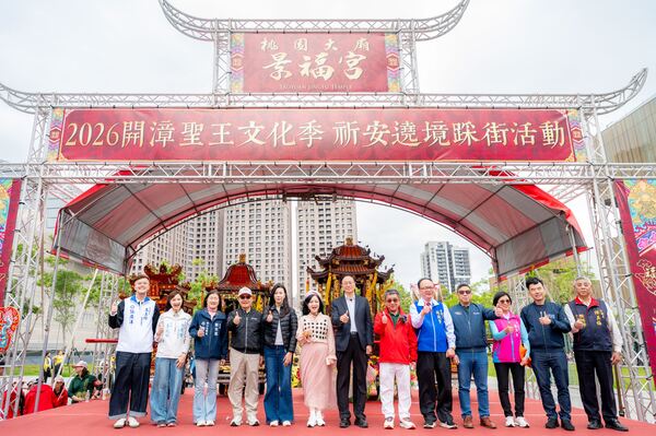 文化局表示,由桃園大廟景福宮主辦的「2026 開漳聖王文化祭暨遶境踩街活動」,於今日上午 7 時至晚間 8 時在桃園區市中心周邊盛大舉行。當日中午 12 時於桃園藝文廣場、下午 4 時於景福宮廟埕皆安排精彩的定點演出,誠摯邀請市民朋友共襄盛舉,一同祈福迎祥。包括立法委員萬美玲、市議員林政賢、余信憲、陳美梅、市府文化局長邱正生、警察局長廖恆裕、民政局副局長藍品畯、桃園區長許敏松、大廟景福宮主委簡征潭等均一同出席活動。