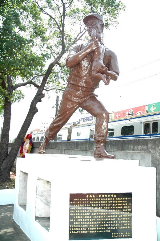 市府民政處說明民國六十五年事發後,當時新竹縣政府為感念唐義士救人義舉,於辦理公祭後,籌資聘請藝術家蒲浩明創作本紀念銅像,供後人憑弔,民國六十六年九月日在事發處舉行銅像揭幕儀式,而林姓幼童的父母感恩萬分,為緬懷其恩澤,遂尊奉唐高義士為幼童義父,並將其骨灰安奉壹同寺,視如至親,每年春秋兩祭一家人定時前往祭祀。