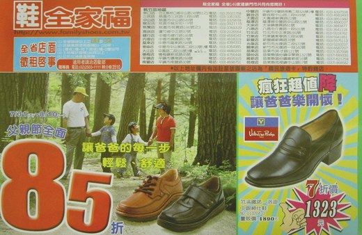 全家福鞋店-楊梅店 父親節全面85折