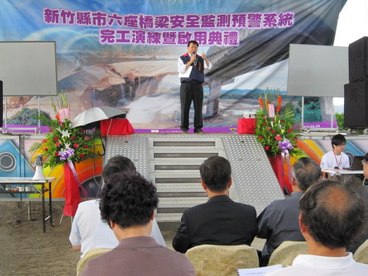 邱縣長表示,感謝中央大學利用科技的力量,為民眾監測新竹縣市六座橋樑的安全性,更感謝宣理事長、科學工業園區管理局及各廠家出錢出力,相信在這麼多貴人的資助下,「人定勝天」,民眾的生命財產將更有保障。