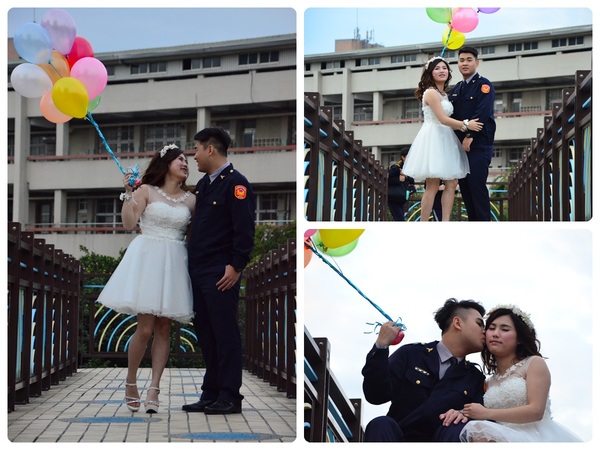中壢警分局中壢所日前接獲民眾檢舉稱「有人穿著警察制服在天橋上拍照 疑似假冒員警」,經員警前往查看時,才發現原來是派出所同仁與未婚妻在拍攝結婚照,讓這起美事因而曝光。
