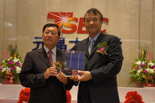 廖董事長說,元晶太陽能科技股份有限公司TSEC Corporation (簡稱TSEC),於2010年6月24日正式成立,資本額為NTD$30.5億,主要營業項目為結晶矽太陽能電池製造與銷售。元晶太陽能的研發團隊憑藉著不斷創新和突破,擁有優異的生產技術,以最低的製造成本,今年將製造出光電轉換效率17.5%以上的太陽能電池,成為生產良率最高的太陽能電池製造廠。