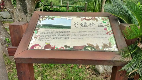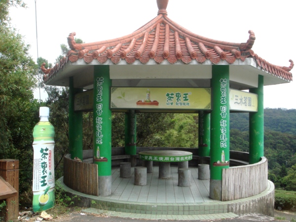 在路線上,有一個大涼亭,上面繪製著"茶裏王"、"山水茗園"的標誌,圓桌桌面上並刻寫著北茶的特色與由來:台灣北茶種植基地之桃園龍潭,位於海拔三、四百公尺之間,山巒起伏,氣候溫和,終年多雨,又得大漢溪之助,多霧氣。此地為紅土土質,屬酸性,不適合種植一般作物,但排水性良好,因此廣植茶樹。且此地茶樹因有濕氣滋潤,品質醇厚。