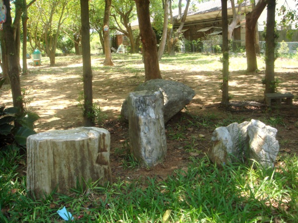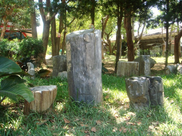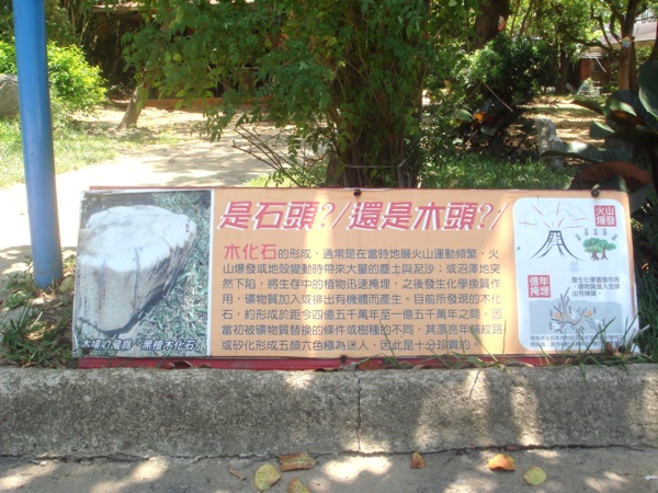 【新屋訊】九斗休閒農場進門左手邊的草皮上,矗列著許多珍貴的"木化石",均屬"黑檀木化石",遊客不可錯過。