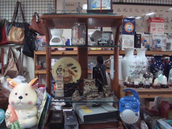 店裡陳列物品包羅萬象,包括古玩、藝術品、玉石、衣服、包包、鞋子、電器用品、冷氣、骨董摩托車(還可騎,有車牌)、腳踏車、家具,以致鍋碗瓢盆等,都在店主曾小姐的慧心與耐心下,整理得十分整潔。