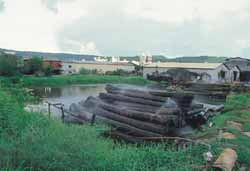 下堆積在空地上,有部份則浸泡在水池中,一株株的把水面都舖滿