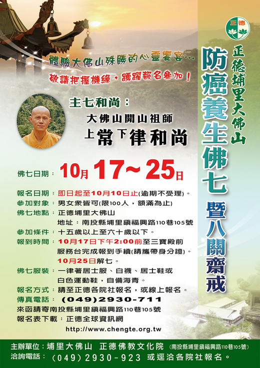 8月4日起…正德全國各院啟建盂蘭盆.中元超拔法會暨慈悲三昧水懺大法會