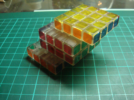 這是顆邪惡的3X3X3改裝。作者也很邪惡,才會做出這種東西來.....