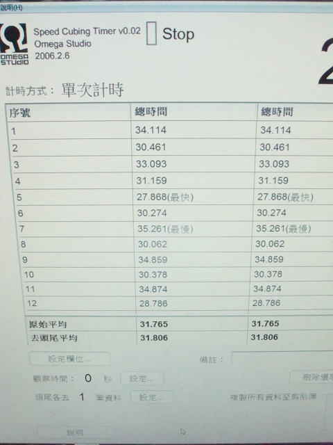 摧殘我的輪迴快10分鐘,終於轉完12轉(兩次pop的紀錄我刪掉了),有兩個成績進2*秒,但34、35秒的應該要更快一些.......