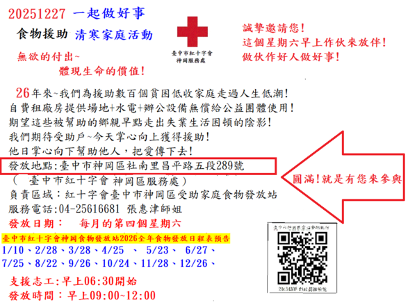 20251227台中市紅十字會神岡愛心食物銀行清寒家庭生活米糧物資活動預告