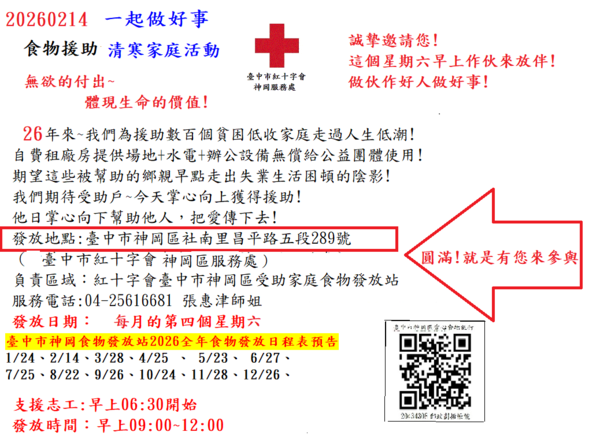 20260124臺中市紅十字會神岡愛心食物銀行清寒家庭生活米糧物資活動預告