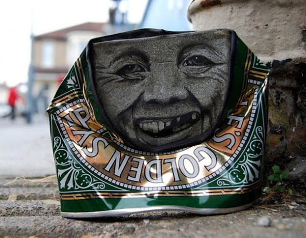 藝術家 My Dog Sighs 在街道上看到人行道上散落的易拉罐,他利用這些易拉罐,通過塗鴉將其變成了特別的藝術品。