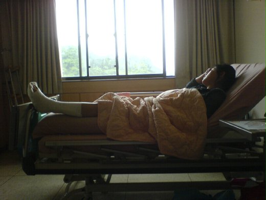 因為我出了意外,住院住了一個多星期,現在還在家養傷。哈!沒那麼恐怖啦!只是左腳斷兩根骨頭而已...(安慰自己)。