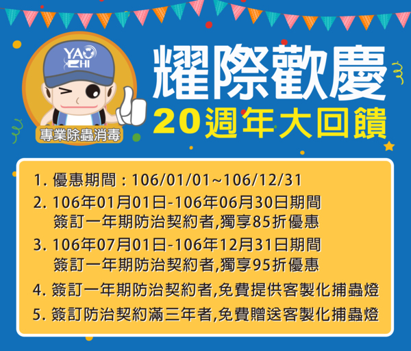 2. 簽訂一年期及滿三年者,免費提供 & 贈送客製化捕蟲燈,