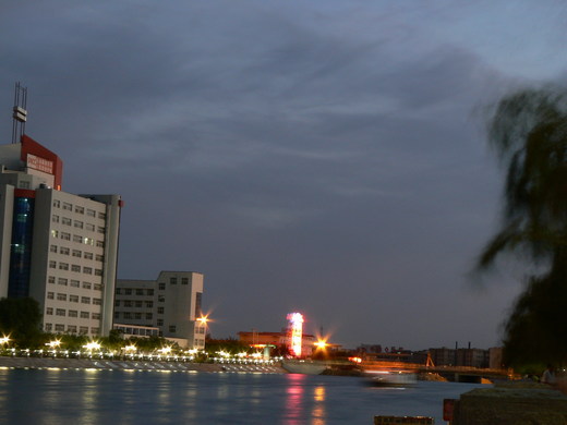 離開住宿的飯店,拐個街角,很快來到流經市區的塔里木河上游河流孔雀河,但見河水清澈,遠處還可瞧見游泳的男女。兩旁綠樹成蔭,柳葉搖曳,人們悠閒的散步其間。河岸的台階上,一對對的年輕情侶,互相偎依著竊竊私語,使人不禁自問:這是那裡啊?