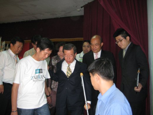 圖片註解:一左一右攙扶謝長廷的就是兩個長期跟著謝的隨扈了,藍襯衫的是阿吉,白T-SHIRT的是董哥。