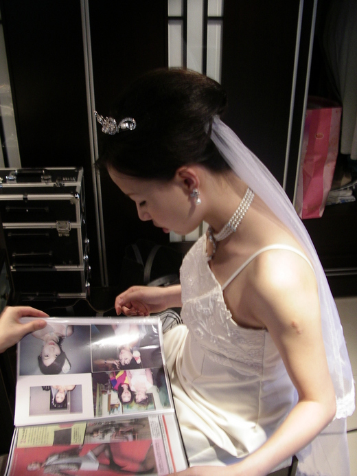 結婚前兩、三個月,在報社旁的聯經書局翻閱了幾本當期新娘雜誌,試圖惡補一下「新娘的流行趨勢」。雜誌裡有許多價格高不可攀的名牌禮服,花材足以鋪滿整個公園的夢幻佈置,當然入鏡的模特兒個個青春美麗,合身白紗擠不出一絲肥肉。