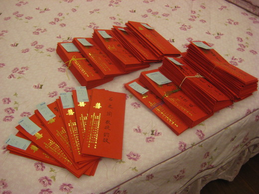 我用毛筆寫了將近兩百張喜帖信封,連續兩天機械式地進行「寫、裝、封」的一人生產線,工作到半夜三點。靠著大眾運輸以及我的「11路公車」(雙腿),我還在兩週內獨力宅配了六十盒喜餅。
