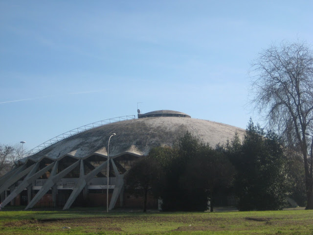 電車停在較遠處,踱步經過看來有些沒落的社區,眼前出現一個老舊的體育場。羅馬的特色是任何老東西都頗有來頭,不例外,它是Palazzetto dello sport,為了1960年羅馬奧運興建的體育場之一。