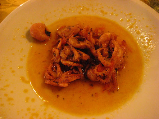 就在食物已經塞滿到喉嚨的當口,壓軸的「第二道菜」(Secondo Piatto)上來了:跟桌子一樣寬的巨無霸海鮮拼盤。![]()