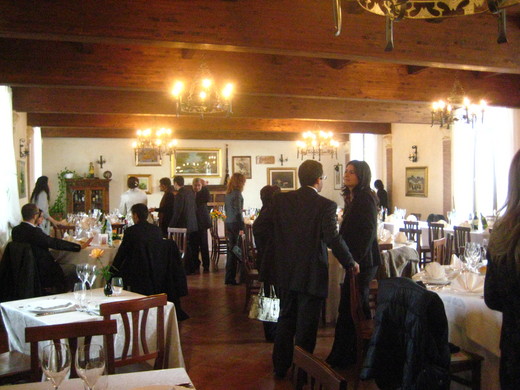 儀式結束後同樣有宴客餐會,但也十分簡單。在台灣,宴客過程新娘至少要換三套衣服,搭配的髮型、妝、首飾也要全部不同;在義大利沒有婚紗公司出租禮服,白紗都是自備,所以新娘從頭到尾一套白紗到底即可,也不必請新娘秘書。