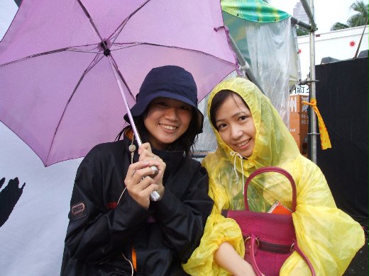 我在現場穿著垃圾袋雨衣跟穿著GORE-TEX風衣的某電視台女主播合照一張,他的雍容對照我的狼狽,只能自我解嘲「我好像菲傭陪小姐出門」。