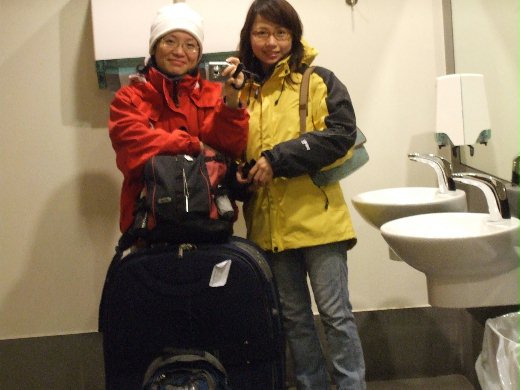 別想歪,我可不會在路邊就地解決啦!我是厚臉皮跑去敲了五星級飯店sas的門,跟警衛拜託借廁所。瑞典人不是特別有同情心,但那位天使伯伯竟然善心大發,給了我廁所的密碼(沒錯,要進廁所有如進保險金庫,還得按密碼!)為此我跟友人D還拍下紀念照一張。(圖三)